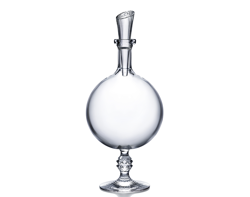 Inspired by wine, and in love with luxury, bold visionary and daring vintner Jean-Charles Boisset declares his admiration for Baccarat with the Passion Collection. Beautifully shaped like a wine glass, this decanter is round so the aromatic expression of the sparkling wine can escape and be brought back into the served glass. Wine can easily be poured into the inviting lip and the narrow neck is designed for a gentle, elegant and slow pour representing the slow evolution of winemaking. The diamond cut stem is a nod to the grape being our diamond and allows for the carafe to easily be held. The base is powerful and the decanter is a commanding presence on your table.
