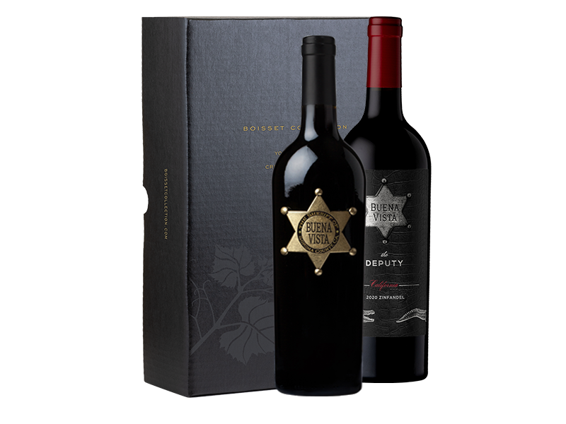 This elegant 2-bottle gift set includes 1 bottle each of Buena Vista 2020 The Deputy Zinfandel, California & Buena Vista 2022 The Sheriff Red Blend, Sonoma County packaged in a beautiful premium gift box.